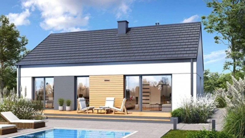 Две одинаковые изолированные комнаты вмешают спальное и рабочее место и зону хранения. Основная спальня включает дополнительно зону ТВ и будуарный столик, имеет свой выход на длинную террасу вдоль всего фасада дома.