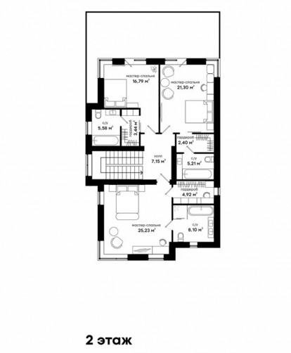 Дом выполнен в сочетании классического и современного стилей. Дом запроектирован для постоянного проживания. Фасады дома выполняются из облицовочного светлого кирпича, принятого как основной и темного с перетекающими оттенками, из которого выполнен фрагмент фасада по периметру здания под свесами кровли и декоративные элементы фасада.