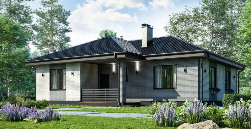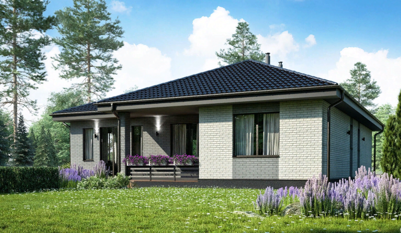Особенность этого дома — продуманная планировка без коридоров, что обеспечивает максимальную функциональность и свободное пространство внутри. Просторная кухня-гостиная станет центром семейных встреч и приятных вечеров, а три спальни подарят каждому члену семьи личное пространство и комфорт.