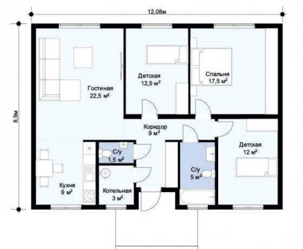 Современная планировка с окнами в пол,совмещенная кухня-гостинная, 3 комфортные спальни,2 сан-узла,котельная.